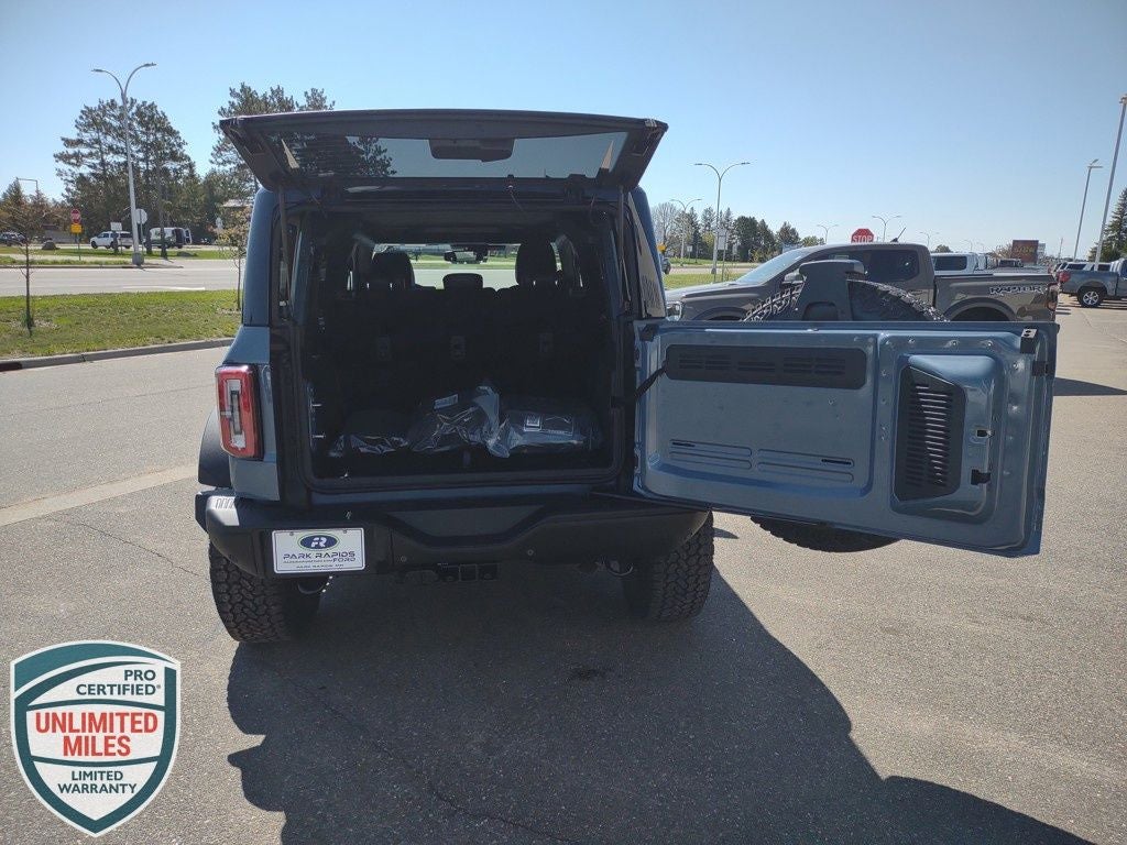 Neighbors Ford Of Park Rapids is pumped up to offer this superb-looking 2025 Ford Bronco Badlands in Azure Gray Metallic Tri-Coat, Beautifully equipped with Equipment Group 334A Lux Package (360-Degree Camera, Adaptive Cruise Control, Evasive Steering Assist, Front Parking Sensors, Information on Demand Panel, Radio: B&O Sound System by Bang & Olufsen, Sideview Mirrors, Universal Garage Door Opener, and Connected Navigation), Sasquatch Package (4.7 Final Drive Ratio, High Clearance Fender Flares, High Clearance Suspension, and Position-Sensitive Bilstein Shock Absorbers), Raptor-Style Running Board, 4-Wheel Disc Brakes, 7 Speakers, ABS brakes, Air Conditioning, Alloy wheels, AM/FM radio: SiriusXM with 360L, AM/FM Stereo, Auto High-beam Headlights, Auto-dimming Rear-View mirror, Brake assist, Compass, Delay-off headlights, Driver door bin, Driver vanity mirror, Dual front impact airbags, Dual front side impact airbags, Electronic Stability Control, Emergency communication system: 911 Assist, Engine Block Heater, Exterior Parking Camera Rear, Front & Rear Floor Liners w/o Carpet Floor Mats, Front anti-roll bar, Front Bucket Seats, Front Center Armrest, Front fog lights, Front License Plate Bracket, Front reading lights, Front wheel independent suspension, Fully automatic headlights, Hard Top Sound Deadening Headliner, Heated door mirrors, Heated front seats, Heated steering wheel, Illuminated entry, Integrated roll-over protection, Leather Shift Knob, Leather-Trimmed/Vinyl Bucket Seats, Low tire pressure warning, Marine Grade Vinyl Heated Bucket Seats, Occupant sensing airbag, Outside temperature display, Overhead airbag, Overhead console, Panic alarm, Passenger door bin, Passenger vanity mirror, Power door mirrors, Power steering, Power windows, Radio data system, Rear-Window Defroster & Washer, Remote keyless entry, Security system, Shadow Black Painted Hard Top, SiriusXM w/360L, Speed control, Split folding rear seat, Steering wheel mounted audio controls, SYNC 4, Tachometer, Telescoping steering wheel, Tilt steering wheel, Traction control, Trip computer, Variably intermittent wipers, Voltmeter, and Wheels: 17 Black High Gloss-Painted Aluminum (64X)! Price does not reflect state taxes and registration. $2500 - Retail Customer Cash. Exp. 03/31/2026 Must be 2016 or newer and less than 150k miles